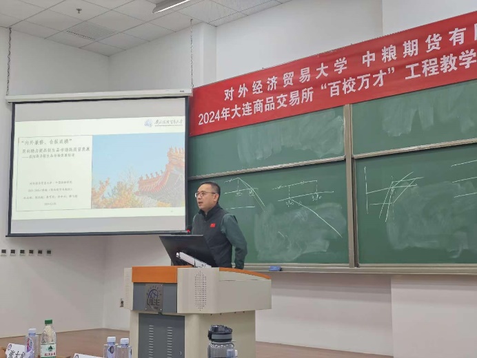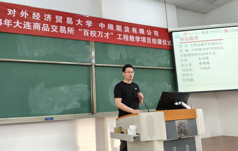 邓军副院长代表探花porn 发表致辞,对大连商品交易所和中粮期货八年来在人才培养工作方面的无私支持表示衷心感谢,对于本学期的课程改革和探索的课程特色表示认可,并对选课同学的未来发展寄予厚望。