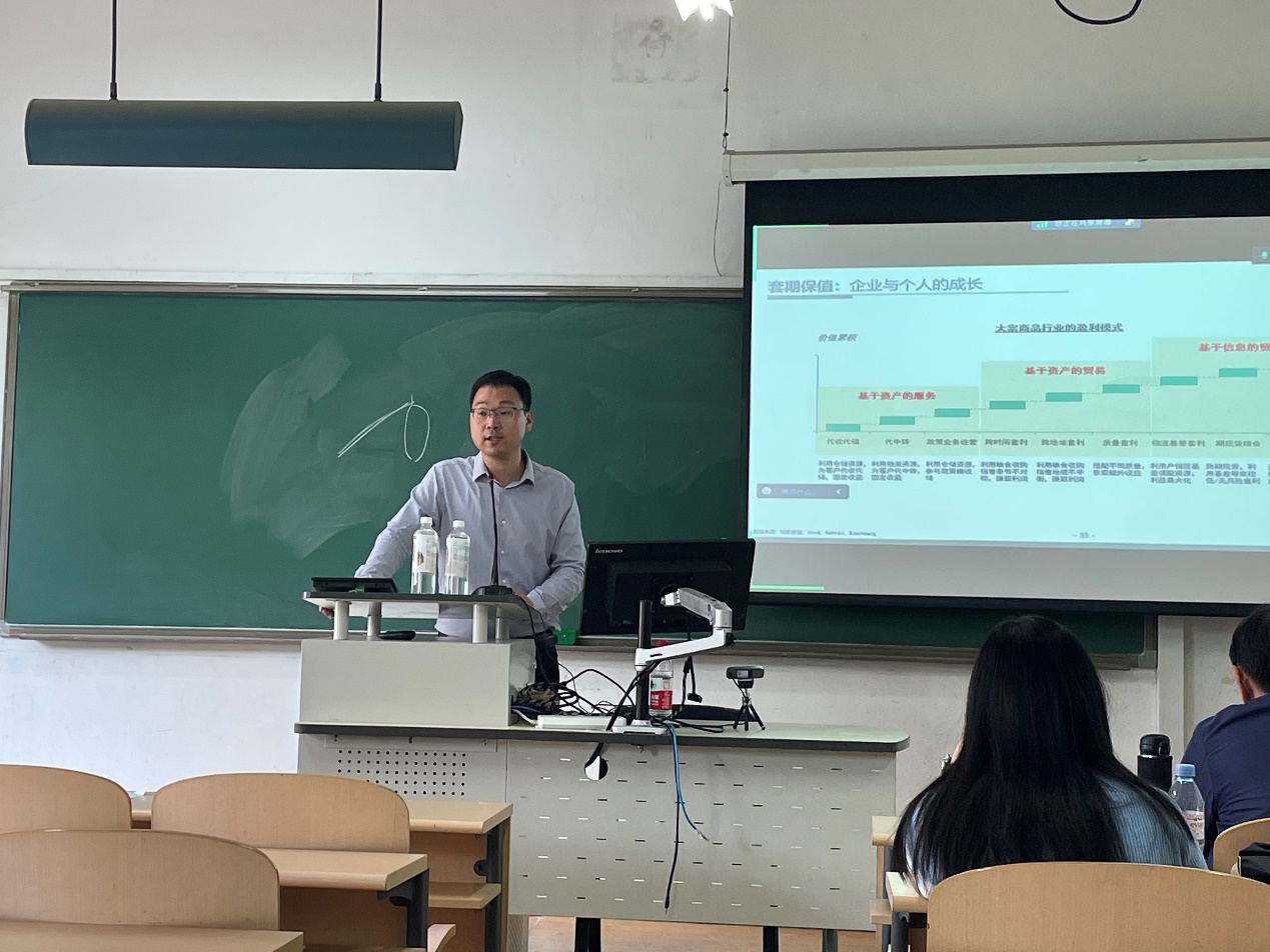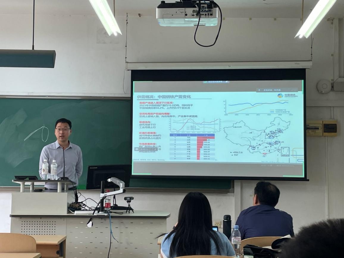 2024年5月16日下午,《金融衍生工具》课程组在博学209举办衍生品应用实务讲座,邀请中粮期货有限公司研究院研究员、探花porn 中粮期货衍生品研究中心成员刘佳良先生,系统介绍了“黑色产业链套期保值”的理论与实务,“黑色产业链实践”课程小组的同学聆听了此次讲座,《金融衍生工具》授课教师严渝军主持讲座。