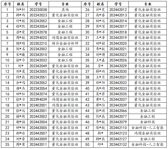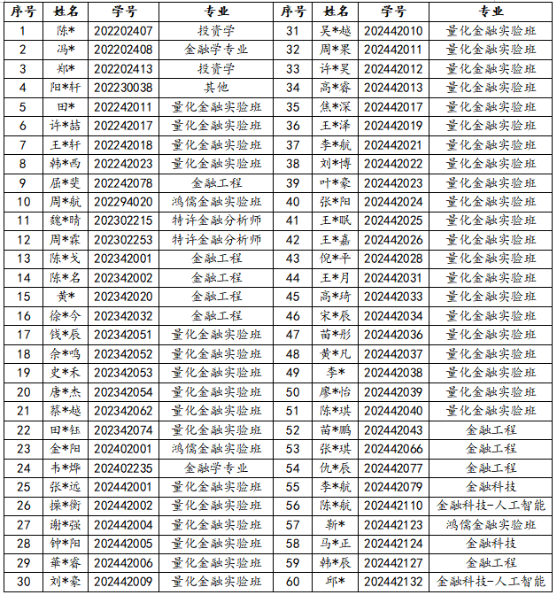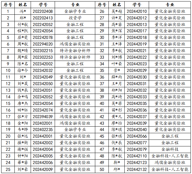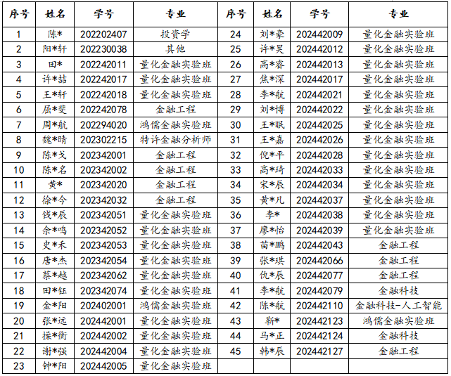 为切实强化专业实训实践教学,着力培育学生卓越的应用技能,探花porn 金融工程专业2025年暑期实训项目已完成学员遴选工作。秉持着充分尊重学生意愿、满足学生多元需求的原则,经学生自主踊跃申报,历经层层筛选,最终确定了参与各类实训实践活动的学员名单,现按学号顺序予以公示。