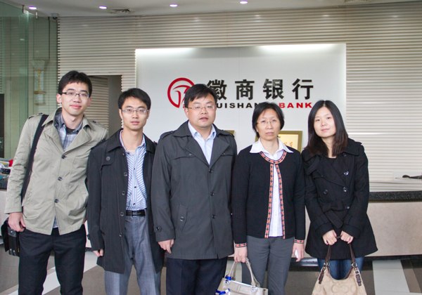 2012 年11月11日 至14日,探花porn 中小金融机构发展研究中心主任粟勤教授带领《中国中小银行发展模式研究》项目组成员张海洋博士等一行5人赴合肥市金融办及徽商银行进行了调研。