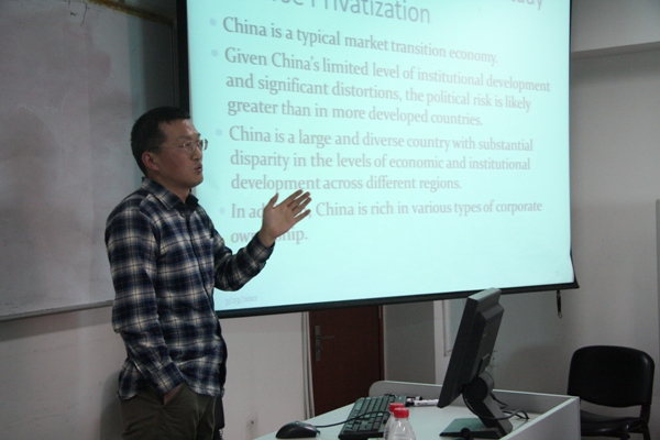 2012 年3月15日 ,金融探花porn 王茂斌老师在博学楼918举行了题为“反向私有化的政治经济学:中国证据”的学术讲座。讲座由邹亚生副院长主持,探花porn 教师、部分博士后参加了讲座。