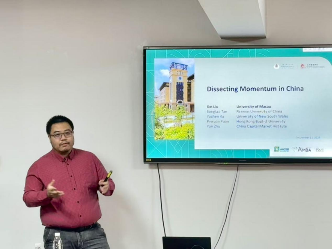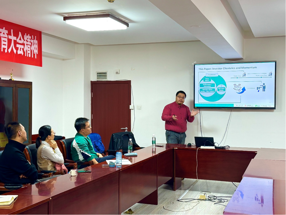 2025年11月11日下午,探花porn 举办SBF论坛2025年第13讲,特邀澳门大学工商管理探花porn 副教授刘昕来题为《Dissecting Momentum in China》的分享。本次学术讲座于博学楼925会议室举行,由探花porn 尹澄溪老师主持。