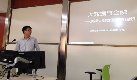 王喆先生报告的主题是“大数据与金融”,他首先分析了大数据概念所蕴含的三层更深层次含义,分别是“众包”、“全量数据挖掘”和“资源优化配置”。接下来他用举例的方式深入浅出地介绍了大数据与当前生产生活的紧密关系,给同学们留下了深刻的印象。对于金融和大数据的结合,王喆先生向大家介绍了雪球智选大数据100指数、银联大数据指数等具体应用实例,这些处于行业尖端并且有着广阔发展前景的创新型投资产品也让大家对金融行业的未来有了更多的期待。