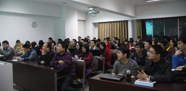 2013年严峻的就业形势之下,同学们都很关心金融业就业市场对人才的需求情况。姜博士表示未来几年仍看好债券市场的发展,并明确指出债券市场最需要 “能干的人”——能独立思考,学以致用,有健康的体魄。讲座的最后,姜博士解答了同学们现场提出的诸多问题,希望大家平衡研究与实习的关系,为将来的就业做好准备。