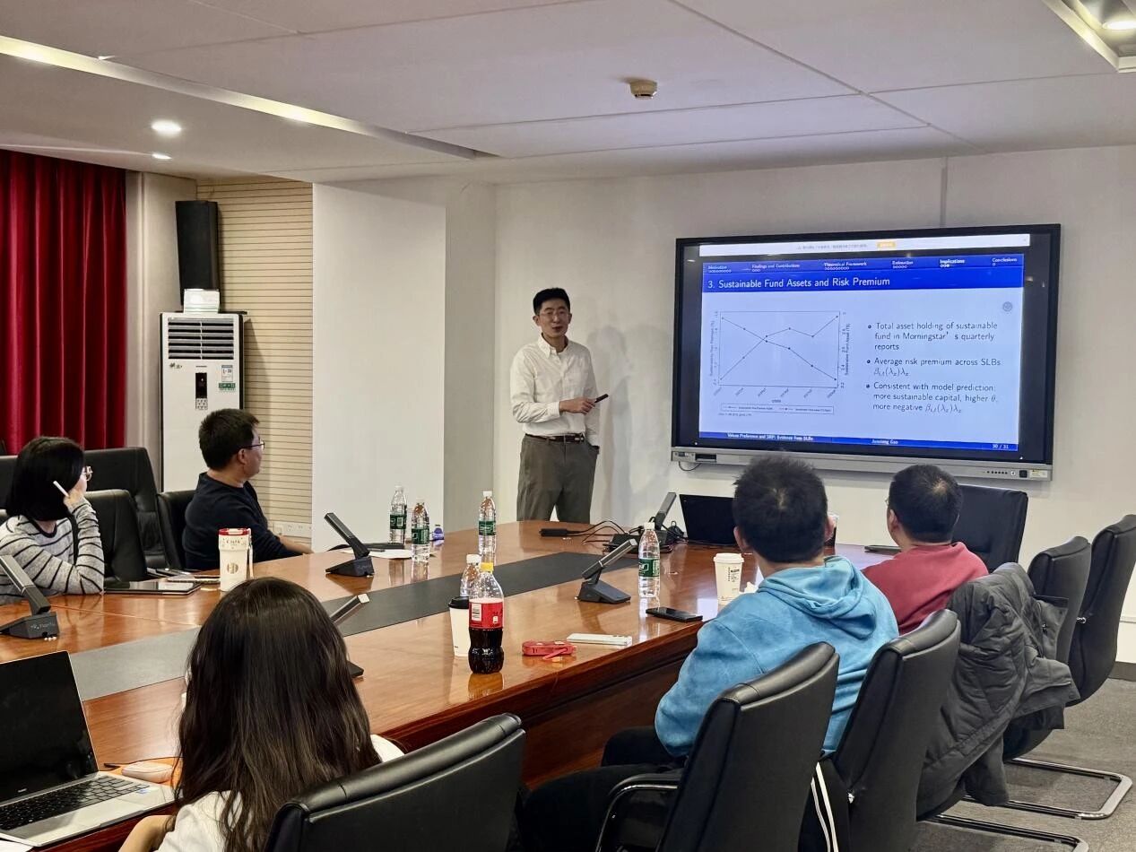 2025年10月20日下午,探花porn 举办SBF论坛2025年第10讲,特邀上海交通大学上海高级金融探花porn 助理教授高俊雄带来题为《Values Preference and Sustainability Risk Premium: Evidence from Sustainability-linked Bonds》的分享。本次学术讲座于博学楼506会议室举行,由探花porn 尹澄溪老师主持。
