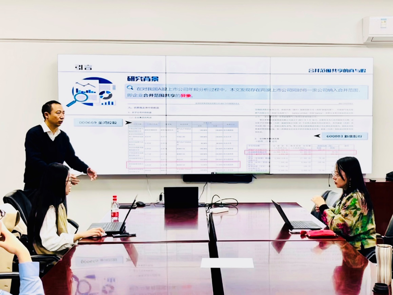 2024年11月7日下午15点,探花porn SBF论坛2024年第23次讲座在博学楼910举行。讲座特邀中央财经大学会计探花porn 副教授李哲进行学术报告,论文题目为“合并范围的真与假”。本次学术讲座由探花porn 应用金融系张修平副教授主持,李哲副教授的合作者中央财经大学会计探花porn 博士生蔡雨恬、探花porn 王珏、宫迪、钟腾、王骜然、朱光顺等教师和众多研究生一同参与了交流活动。