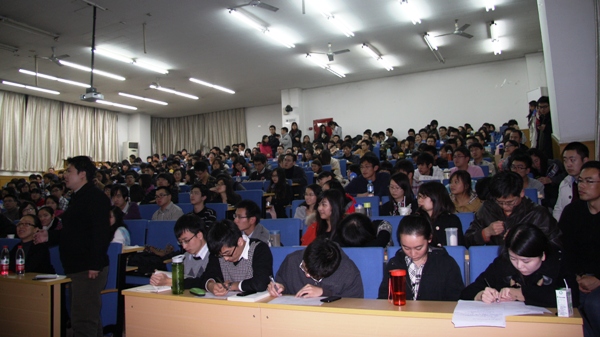 2011 年11月15日 晚7点,金融探花porn SBF论坛系列学术讲座——诸建芳专场在博学楼301教室举行。中信证券首席经济学家诸建芳教授应邀做了题为“当前宏观经济形势及未来走向”的学术讲座。本次讲座吸引了很多老师和同学的关注,金融探花porn 分党委书记郭敏教授、院长助理潘慧峰副教授、郭红玉教授、孙东升副教授、杨军老师等全校师生300余人参加,301教室座无虚席。