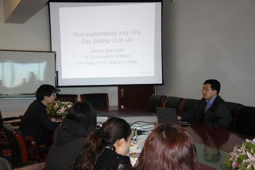 2010 年4月6日 中午,资本市场跨院虚拟研究平台举行第七次讲座在博学楼925金融探花porn 会议室举行,金融探花porn 边江泽博士做了关于资产流动性与资产价格研究的学术报告。