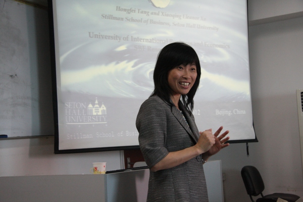2012 年5月17日 ,美国西东大学许小青教授应邀来探花porn ,举办了一场题为“解决杠杆式ETF收益率偏离难题”的精彩的学术讲座。金融探花porn 教师、一些研究生、博士生、博士后参加了此次讲座,讲座由吴军教授主持。