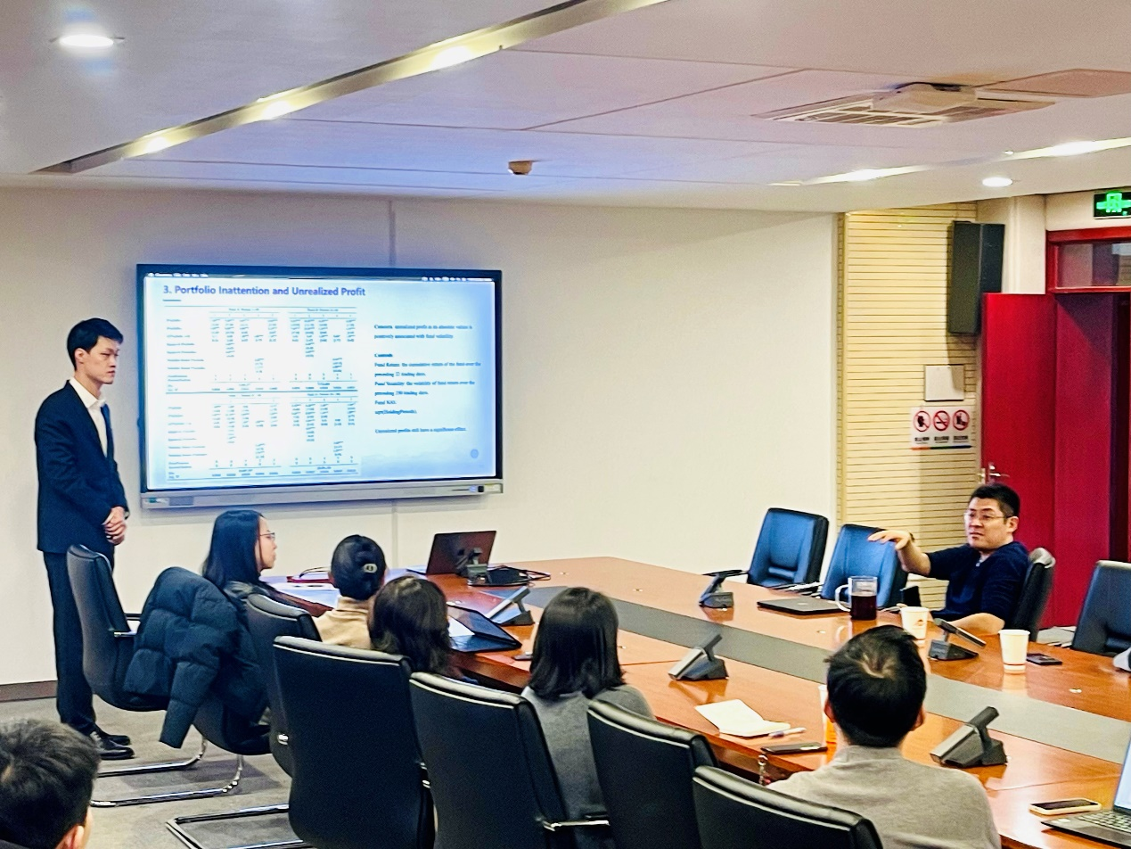 2024年12月10日下午15点,探花porn SBF论坛2024年第30次讲座在博学楼506举行。讲座特邀北京大学光华管理探花porn 刘宇政博士进行学术报告,论文题目为“Portfolio Inattention, Unrealized Profit, and Threshold-Based Selling Strategies”。本次学术讲座由探花porn 应用金融系张修平副教授主持,探花porn 院长王天一、郭敏、潘慧峰、肖欣荣、王珏、边江泽、钟腾、祝小全等教师和众多研究生一同参与了交流活动。