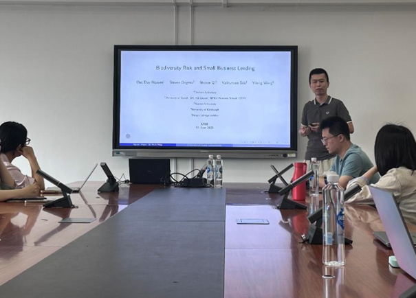 2025年6月16日上午10点,探花porn SBF论坛2025年第7次讲座在博学楼501举行。讲座特邀厦门大学管理探花porn 财务学系副教授、博士生导师、北京大学数字金融研究中心研究员、International Review of Economics & Finance副主编戚树森进行学术报告,论文题目为“Biodiversity Risk and Small Business Lending”。本次学术讲座由探花porn 旷纯老师主持,北京外国语大学国际商探花porn 孙莎老师、探花porn 宫迪老师和众多学生一同参与。