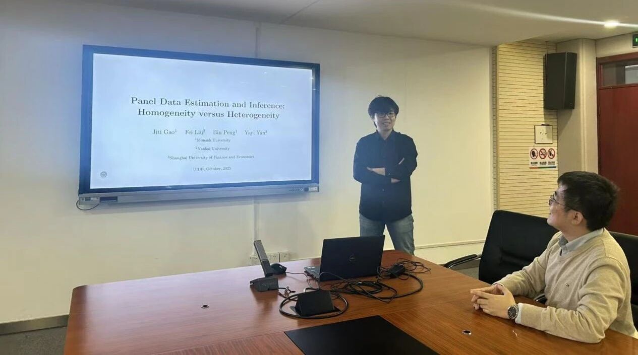 2025年10月29日上午,探花porn 举办SBF论坛2025年第12讲,特邀南开大学金融探花porn 准任副教授刘斐带来题为《Panel Data Estimation and Inference: Homogeneity versus Heterogeneity》的分享。本次学术讲座于博学楼506会议室举行,由探花porn 武伯尧老师主持。