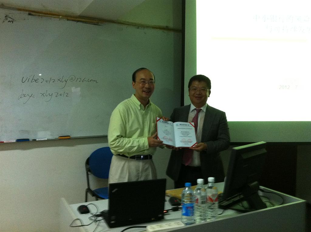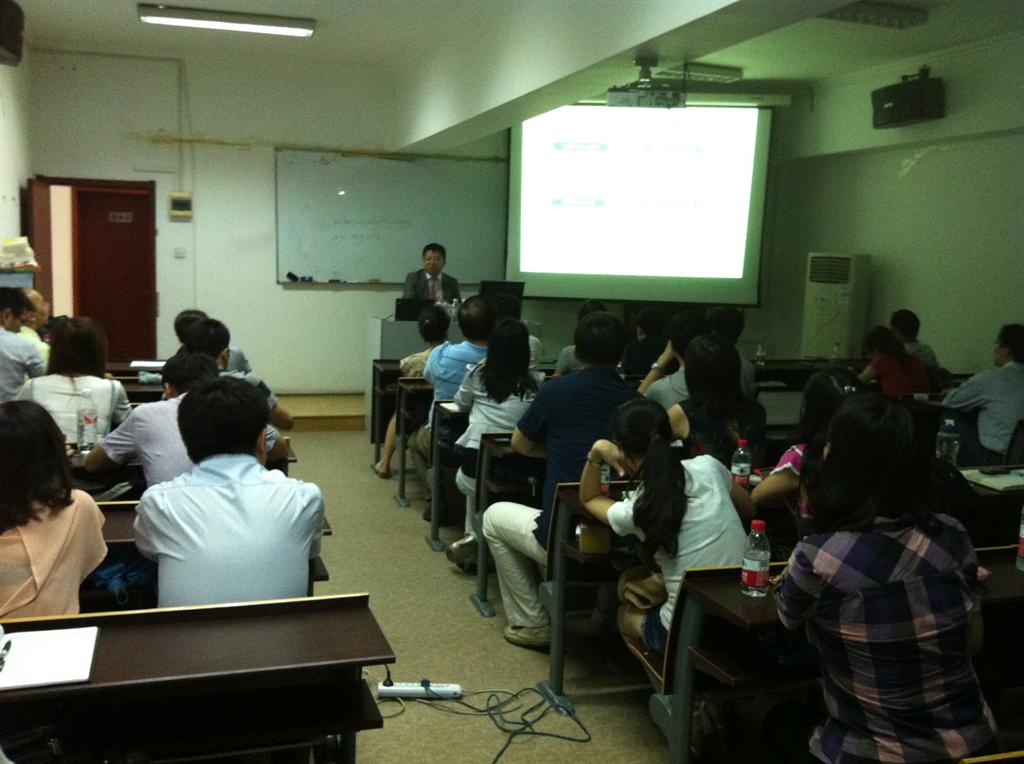2012 年7月30日 晚6:30,香港Billion Sino Holdings Ltd公司董事长兼首席执行官胡光辉博士应邀莅临探花porn ,在博学楼918主讲金融探花porn SBF论坛——金融市场研究方法与实践系列学术讲座第十二讲:“中小银行风险管理和可持续发展”。这一活动由金融探花porn 、金融市场研究中心、全球风险协会(GARP)北京分会和探花porn 分会主办,并得到全球风险协会(GARP)、瑞华融信(北京)管理咨询有限公司(China Financial Enterprise Solutions Inc.)的赞助。讲座由金融市场研究中心主任、全球风险协会(GARP)北京分会共同主席张海云教授主持,经贸大探花porn 内外教师、学生和校外金融业朋友共50余人参加了此次讲座。
