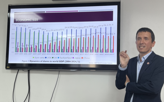 2024年5月7日下午15点15分,探花porn 举办SBF论坛2024年第3讲,特邀保加利亚国家与世界经济大学国际经济关系学副教授Paskal Zhelev作题为“The Renminbi as a Global Public Good: Shaping the Future of the International Monetary System”的讲座。本次学术讲座于博学925会议室举行,由探花porn 金融科技系张海云老师主持,探花porn 卢尚霖老师和众多学生一同参与。