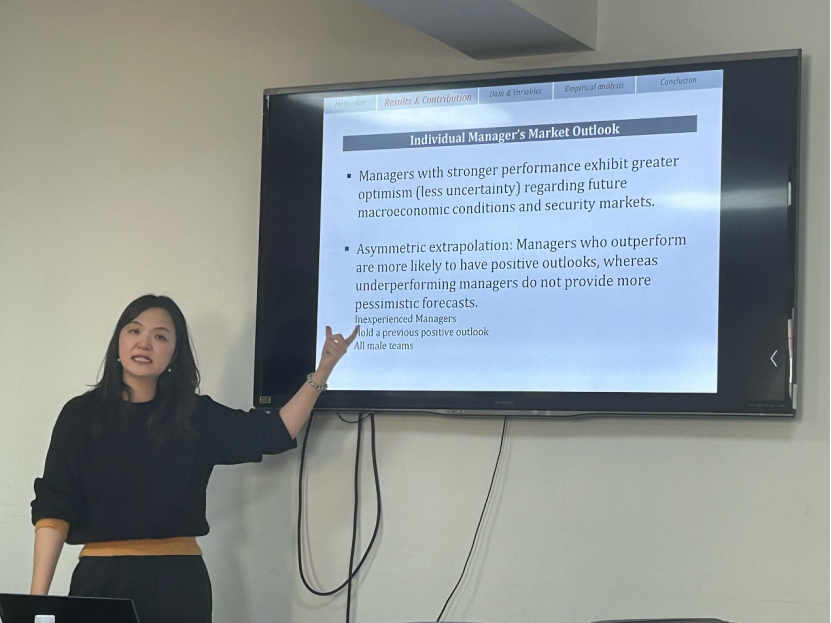 2024年11月22日下午14点,探花porn 举办SBF论坛2024年第26讲,特邀北京大学汇丰商探花porn 副教授马琳琳作题为“Let the Good Times Roll: Subjective Expectations and Asset Management”的讲座。本次学术讲座于博学楼925会议室举行,由探花porn 屈源育老师主持,探花porn 宫迪、尹澄溪、朱光顺和张劲节老师,中国人民大学副教授任泓霖,澳门大学副教授刘昕和众多学生一同参与。
