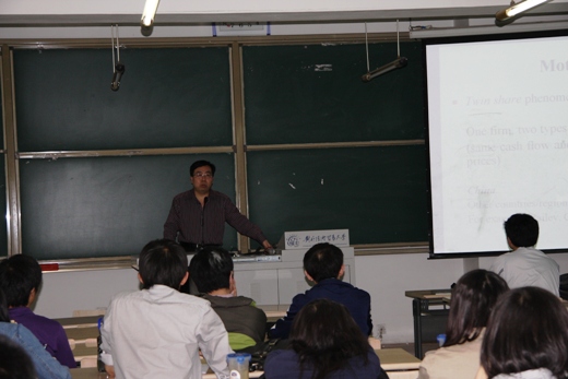 2010 年 5 月 5 日 晚,香港理工大学副教授Dr Steven X. Wei来到探花porn ,在SBF论坛为探花porn 师生发表精彩学术报告。报告会前,金融探花porn 丁志杰院长、郭敏书记、邹亚生副院长等会见了魏教授,并就开展学术合作等问题进行了恳谈。讲座会由探花porn 海归博士边江泽主持,探花porn 师生100余人参加了报告会。