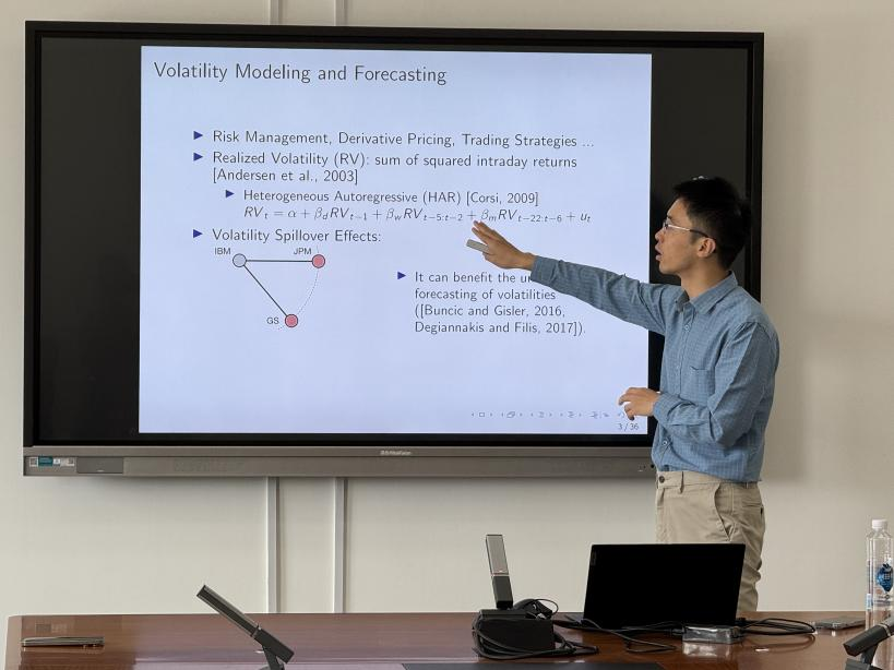 2025年5月16日上午10:30,探花porn 举办SBF论坛2025年第4讲,特邀香港科技大学(广州)助理教授张超作题为“突破对称性:金融驱动 AI”的讲座。本次学术讲座于博学楼501会议室举行,由探花porn 卢尚霖老师主持,探花porn 邓军副院长、谢海滨老师和众多学生一同参与。