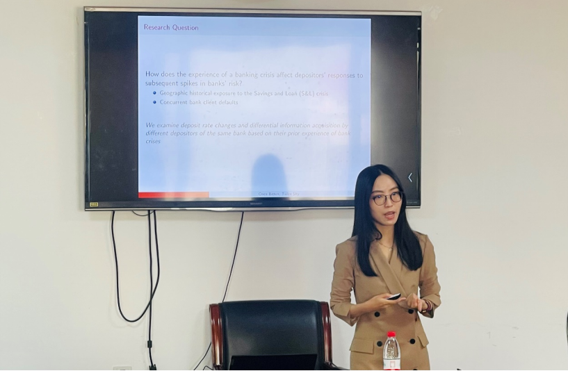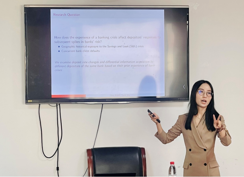 2024年11月1日上午10点,探花porn SBF论坛2024年第21次讲座在博学楼925举行。讲座特邀香港中文大学商探花porn 助理教授康亚进行学术报告,论文题目为“Once Bitten, Twice Shy: S&L Crisis Experience and Depositor Reactions to Default News”。本次学术讲座由探花porn 应用金融系张修平副教授主持,探花porn 宫迪、席丹、范中杰、韩杨等教师、国际商探花porn 马黎珺副教授和众多研究生一同参与了交流活动。