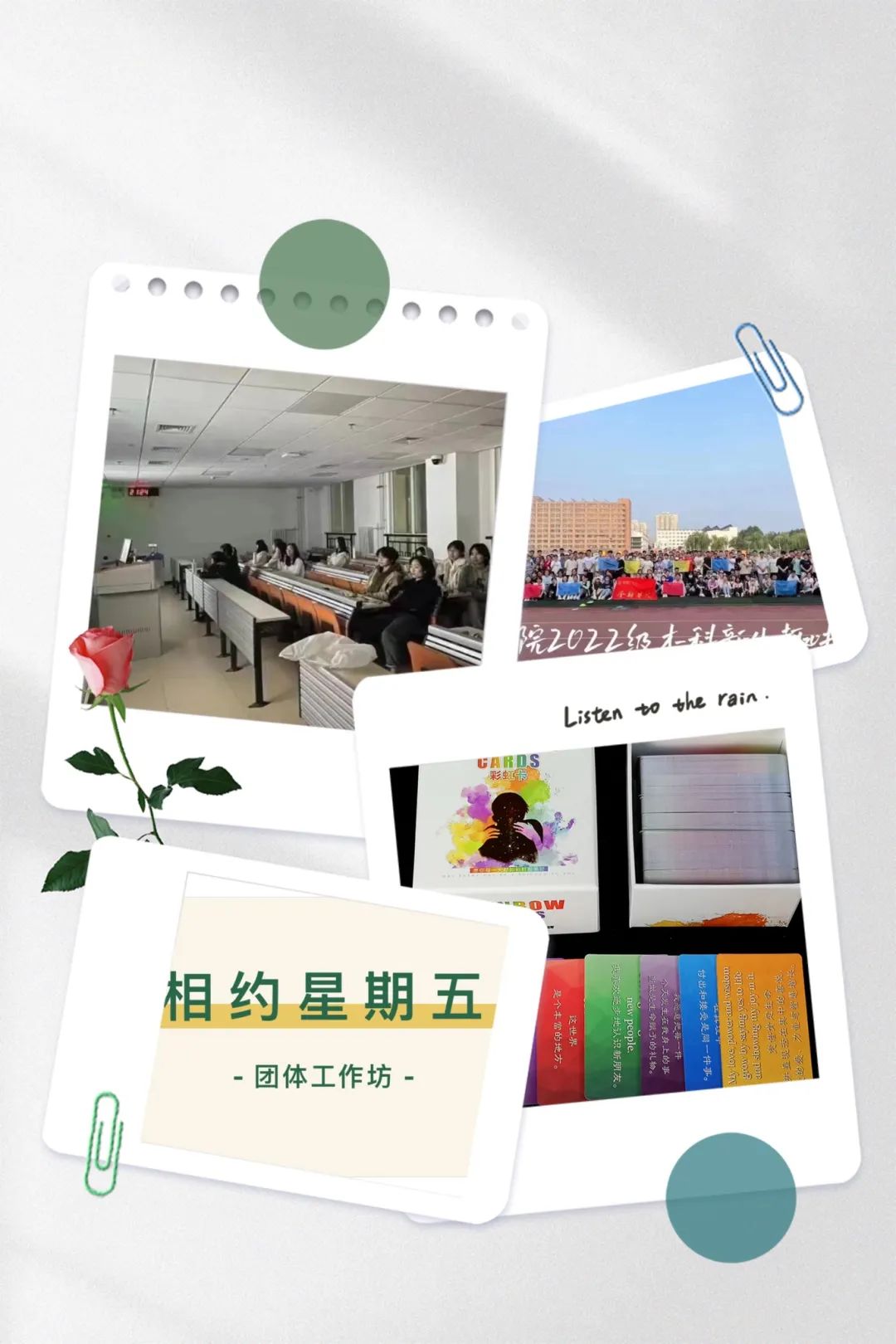 趣味运动会、心理健康知识竞赛、观影打卡活动、心理征文、心理演讲、阅读·心灵释放活动等。