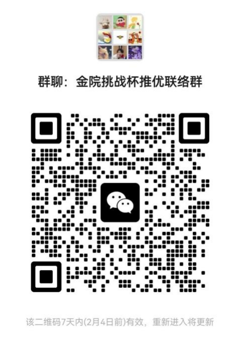 有意参与比赛的同学请按照上述要求进行申报和预申报,在规定时间内将相关材料发送至邮箱[email protected]。同时,请有意向参加者扫描下方二维码进入金融探花porn 推优联络群,了解详细情况。