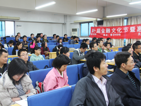 晚18:30, “金华秋十”第十届金融文化节暨惠园名师大讲堂之陈戈专场——“为什么Google选择了我”在博学楼606教室举办。接下来的两个多小时里,巨鲸音乐网的创始人兼CEO陈戈先生娓娓道来,讲述了巨鲸音乐是因何从一个无论技术、专利、用户、资金、收入都一无所有的小网站赢得Google的战略投资,并成为全球唯一被千家唱片公司授权免费下载、播放音乐的正版音乐搜索网站。