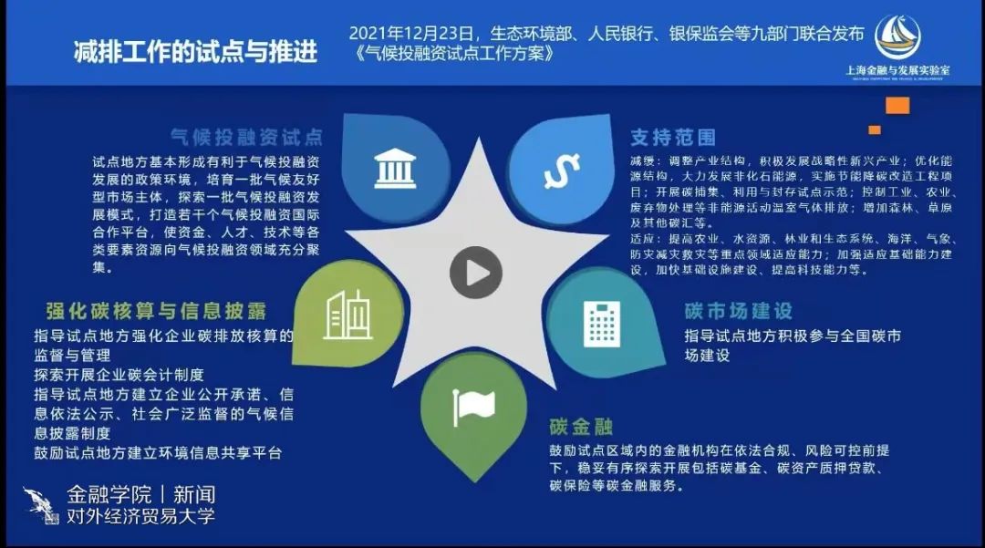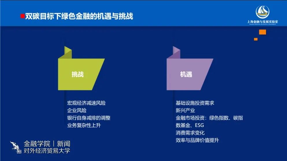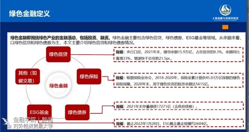 曾刚教授指出,当今金融支持发展的重点在于绿色金融、转型金融和碳金融,并向大家介绍了绿色金融的定义,即围绕绿色产业的金融活动,包括投资和融资。曾教授指出中国绿色金融发展快,产品体系比较完善。此外,曾教授还向大家介绍了绿色金融在重点领域和重点行业的应用,例如交通行业、建筑业、工业领域、能源结构等等。