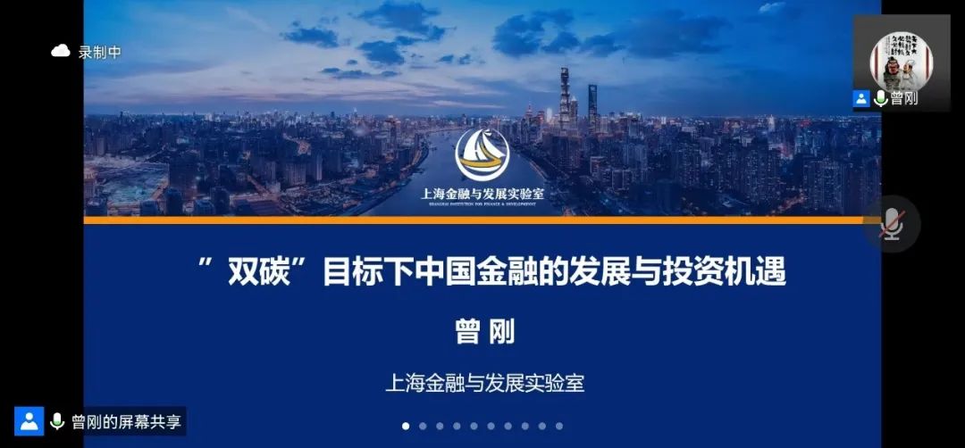 上海金融与发展实验室主任曾刚教授为师生们带来了以“‘双碳’目标下中国金融的发展与投资机遇”为主题的精彩讲座。曾教授从“碳达峰”与“碳中和”的概念出发,引出了本场讲座的主题。以中国二氧化碳排放结构和“双碳”目标实现的技术路径为切入点,讲解了“双碳”目标下的我国的环境现状以及“双碳”目标下绿色金融面临的机遇与挑战。曾教授指出,当前我国面临宏观经济减速风险、企业风险、业务复杂度上升等挑战,但与此同时我国又拥有基础设施投资需求增加、新兴行业兴起发展等有利机遇,所以我国金融行业在“双碳”目标的背景下有很强的发展潜力。