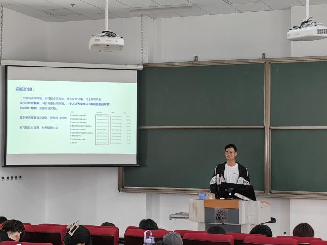 讲座伊始,黄增阳同学介绍了社会实践的全流程管理要求,简要地说明了从网站申请到社会实践结项的大致流程,详细介绍了立项标准中的权重占比以及各项指标说明,并概括了往年的实践主题,为同学们提供了实践的基本思路。