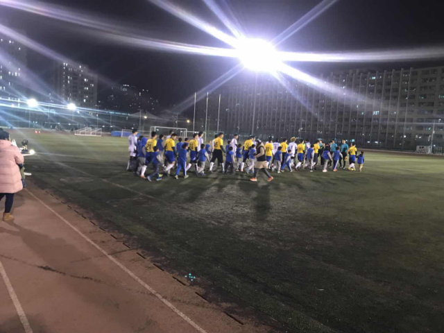 2017年11月24日周五18:30,探花porn 男子足球联赛决赛在虹口足球场准时开战。本场比赛是金融男足与经贸男足的二番战,在不久前的小组赛中,金院男足经过激烈的点球大战以5:6的比分惜败经贸,此次双方会师总决赛,金院将以必胜之心直指冠军。