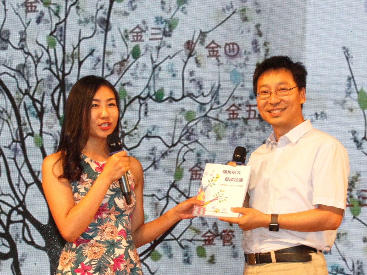歌毕,毕业生代表向院长吴卫星赠送了2012级学子共同制作的纪念书《情系贸大,爱留金融》,作为2012级毕业生留给金融探花porn