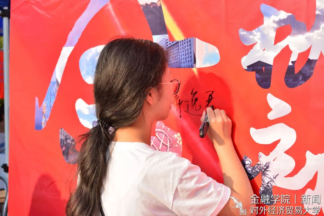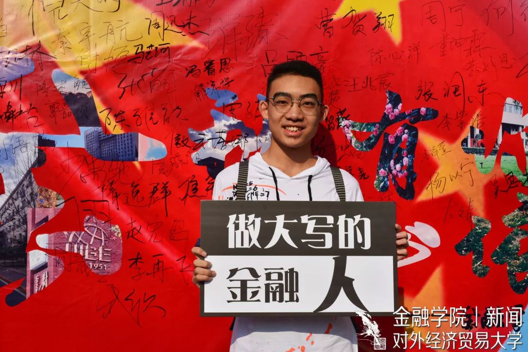 在金融探花porn 报到处,迎新签名板格外引人注目。为庆祝建国70周年,探花porn 准备了庆贺祖国华诞主题的趣味留言板,新生们纷纷挑选进行合影留念,他们眼中流露出的是青年人的朝气,是从此刻开始扬帆远航的信心。