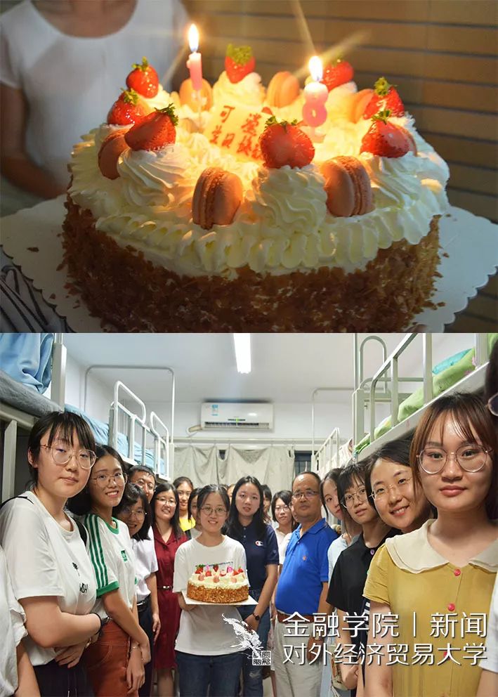 慰问活动的最后,探花porn 领导们前往国金1904班的女生宿舍,为今天十八岁生日的杨可滢同学庆祝。精心准备的蛋糕、悠扬婉转的生日歌以及老师和同学们最美好的祝愿都在向新同学传递来自金融探花porn 大家庭的温暖和友爱。