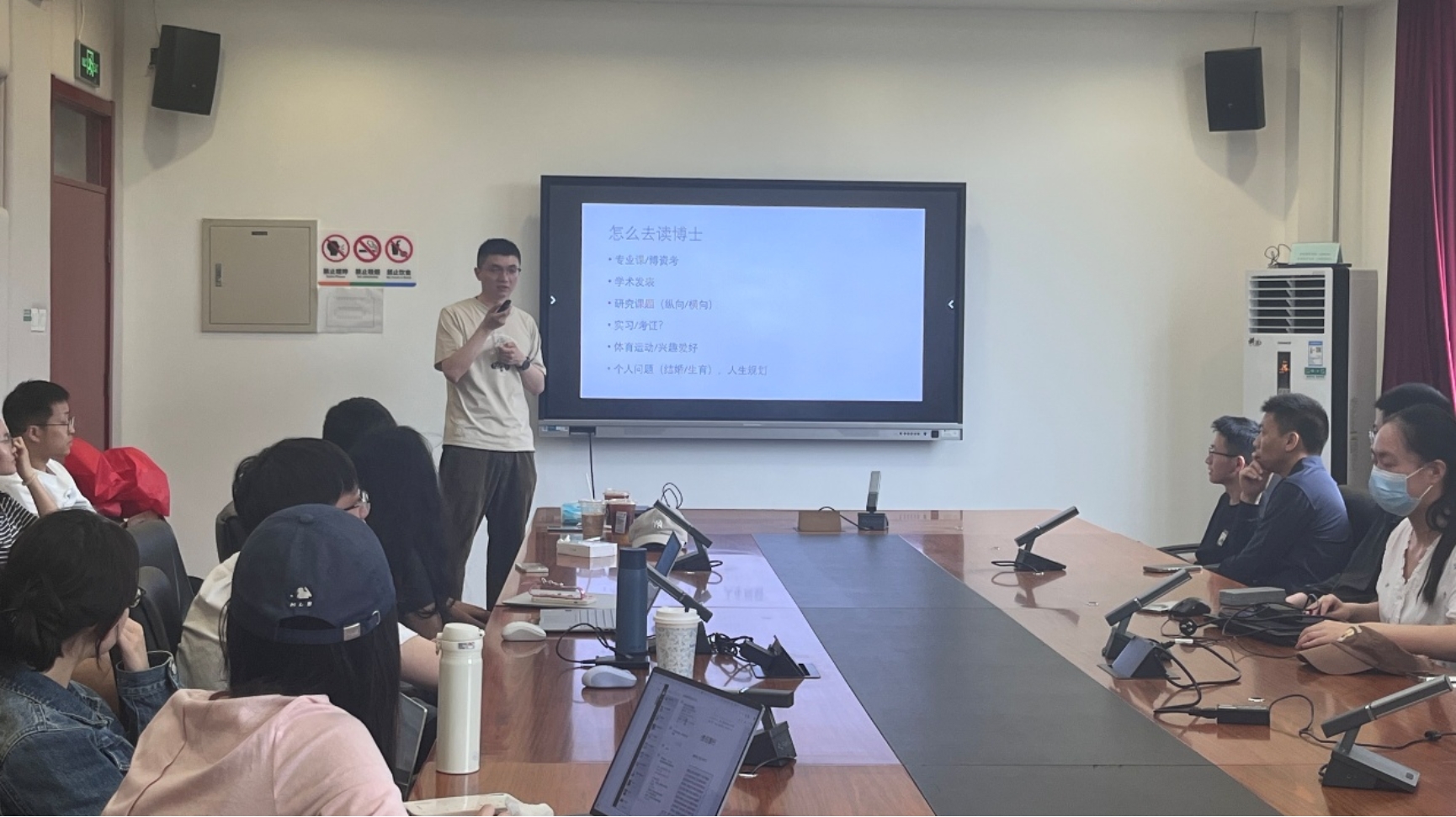 交流会伊始,王晨宇博士从“为什么读博”这一问题出发,引导大家思考读博的初心与目标。他指出,读博不仅是对专业知识的深入钻研,更是对个人能力与毅力的全方位考验。他详细介绍了读博过程中的各个环节,包括专业课学习、博士资格考试、学术发表、如何参与纵向与横向课题研究,以及实习等实践环节。他还特别强调了体育运动与兴趣爱好在读博过程的重要性,提醒大家在追求学术成果的同时,也要关注自身的身心健康。