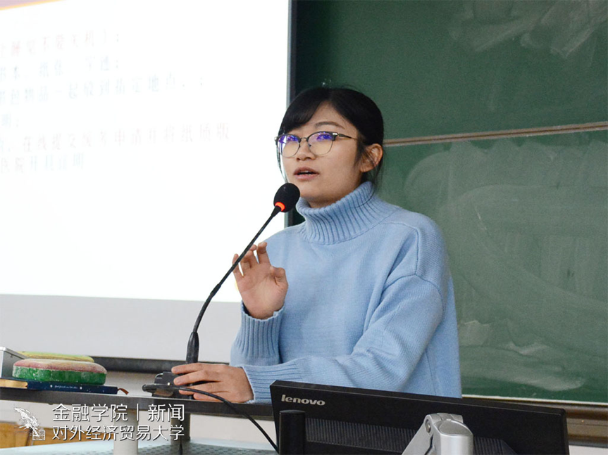 吴虹利还解释了同学们感到疑惑的各种琐碎小事:考取证书、毕业走向、时间安排等。她仔细分析了相关证书的考取,提出大家有意愿可以参与含金量高的注册会计师的考取,并强调专业知识和技能才是最重要的。在介绍其他年级的毕业走向后,吴虹利告诉14级的同学们要根据自己的选择,安排时间,提前做好准备。准备读研的话,寒假就可以开始准备并且要搜集各种信息、参与各种考研经验分享活动等;准备出国则要搜集国家、院校资料,准备语言考试,参与志愿公益,社会实践,科研创新等活动。“一百个人有一百种活法”,不论选择哪条出路,你都得提前做好准备。