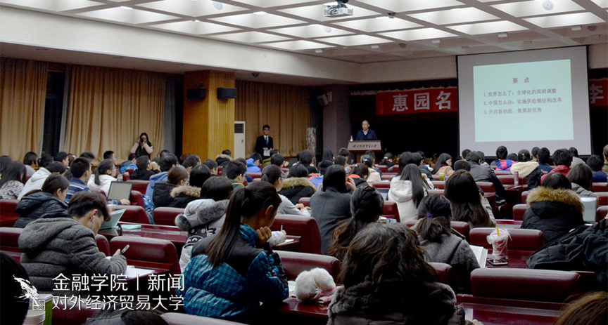 的学生更要带着这样的思想学习金融,坚持改革开放等国家政策”。最后,李健谦虚鞠躬,致谢每一位听众。