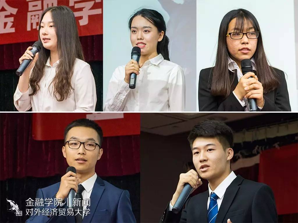 竞选学生会主席的五位同学分别是来自国金1506班,现担任学生会文艺部副部长的邵洁蕙、来自金工1501班,现担任学生会外联部副部长的王虹雨、来自国金1502班,现担任学生会学习部副部长的闫宇航、来自金工1503班,现担任学生会生活实践部部长的袁浩然以及来自国金1503班,现担任学生会办公室正部长的张宇鹏。他们五人依次进行了主题为“忘掉名字吧,我给你一个家”、“源于热爱,忠于使命”、“以爱之名,责己之任”、“爱生活亦实践”以及“你培育我,我想回报以歌”的竞选演讲。