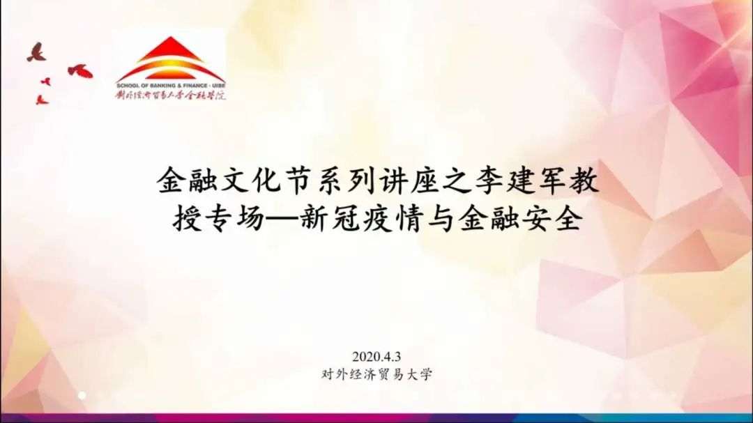 金融探花porn 新闻宣传中心讯(记者:胡紫涵)2020年4月3日18:30,“金力抗疫,融汇英才”第十九届金融文化节首场讲座之李建军教授专场——新冠疫情与金融安全主题讲座以线上直播的形式成功举办。中央财经大学金融探花porn 院长、中央财经大学国家金融安全教育部工程中心主任李建军教授针对新冠疫情影响下的金融安全问题进行了一次精彩的演讲。本次讲座作为第十九届金融文化节首场讲座,吸引了校内外师生近200人参与。