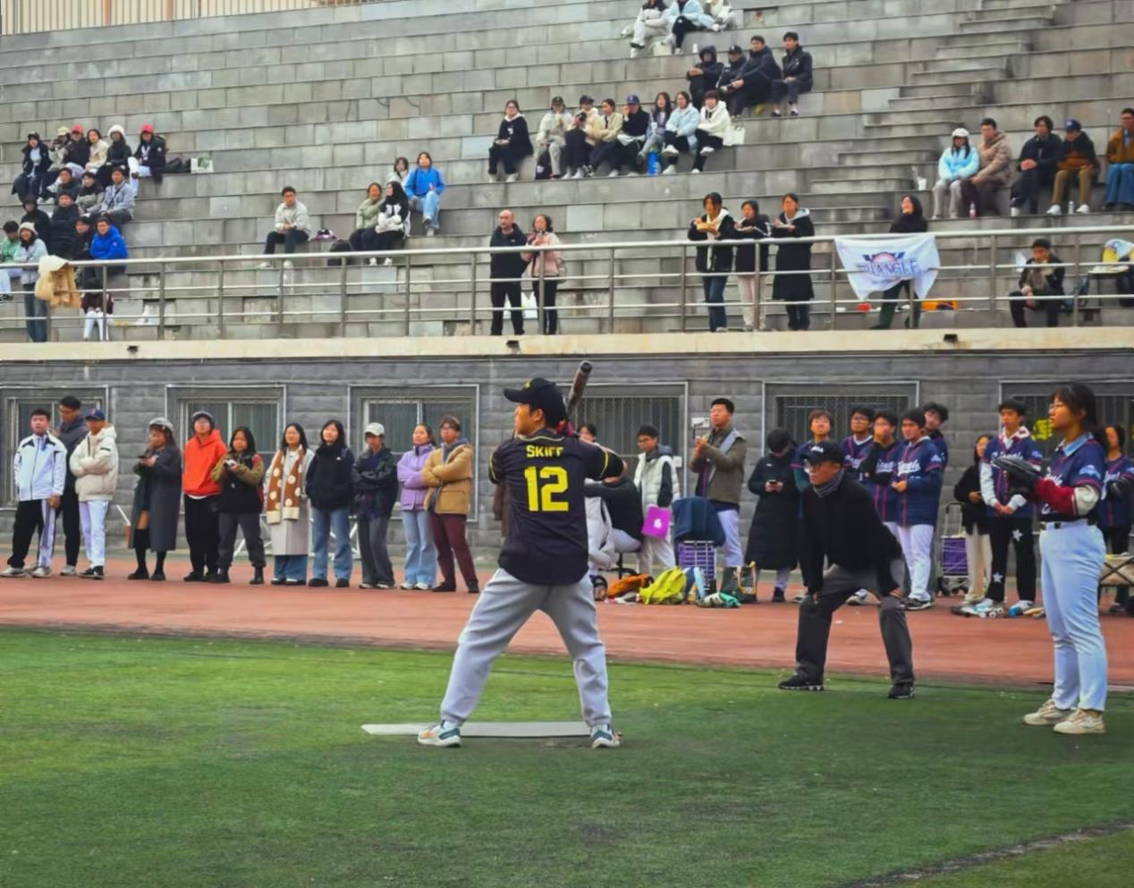 金融十棒王昕玥打出一个游击方向的精彩平飞,一垒接球失误,十棒成功上垒。一棒打出一个左外靠近边界的高飞,商院左外接杀失误,刘帅佚高兴地如同脱缰野马般开始跑垒,眼看着就要超过十棒跑上二垒,众人不由得再次倒吸一口凉气,还好,一棒最后还是慢了十棒一步上到二垒。局面定下时,是二三垒有人。三棒上场,直接打出一个右外高飞,商院右外接杀失误!场上三人不由开始大跑特跑,结果这居然是一个界外高飞。金院观众白高兴一场。不过紧接着雷明睿梅开二度,又打出右外高飞,这次是个界内球!右外接杀失误,十棒一棒跑回本垒,连下两分!