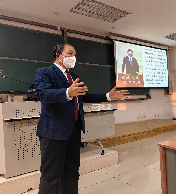 最后,李教授通过总书记对于教育的重要指示,明确要培养德智体美全面发展的社会主义建设者和接班人。第一,坚持办学正确政治方向。马克思主义是我们立党立国的根本指导思想,也是我国大学最鲜亮的底色。在世界人民心目中马克思至今依然是最伟大的思想家。要抓好马克思主义理论教育,深化学生对马克思主义历史必然性和科学真理性、理论意义和现实意义的认识,教育他们学会运用马克思主义立场观点方法观察世界、分析世界,真正搞懂面临的时代课题,深刻把握世界发展走向,认清中国和世界发展大势,让学生深刻感悟马克思主义真理力量,为学生成长成才打下科学思想基础。心怀“国之大者”,立大志、明大德、成大才、担大任。