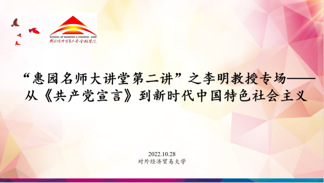 金融探花porn 学生会学习部讯(记者:孟宪彤 摄影:刘昱欣)2022年10月28日15:00,“惠园名师大讲堂第二讲”之李明教授专场以线下讲座的形式顺利举办。在本次讲座中,李教授通过对《共产党宣言》的诞生、演变再到其对各个国家、民族革命的重大影响深刻讲述,启迪了在座青年对未来崇高理想和信念的思考。