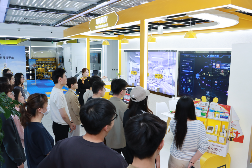 党支部成员们还参观了美团指挥中心,了解了美团的发展历程与业务范畴,实地观摩了实时动态大数据中心系统。闪烁的数据大屏实时呈现城市生活服务的脉搏跳动,无人配送车、无人机组成的"最后一公里"智慧物流网络,以及集定位、导航、安全预警于一体的智能骑手套装,让同学们深刻感受到科技让生活更美好的内涵。