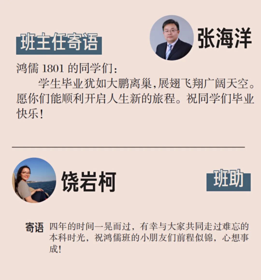 我们来自五湖四海,但都怀着对未来的美好憧憬,因此四年前我们选择相聚鸿儒1801,开启了四年的大学学习生活。