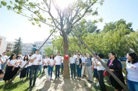 庆祝大会结束后,举行了94级校友捐赠元宝枫树仪式。为感恩母校的培养,94级全体校友向探花porn 捐赠元宝枫树一棵,栽种在金融广场。齐天翔书记、缪琦副秘书长、94级校友代表左坤、梁媛共同为元宝枫树揭牌。