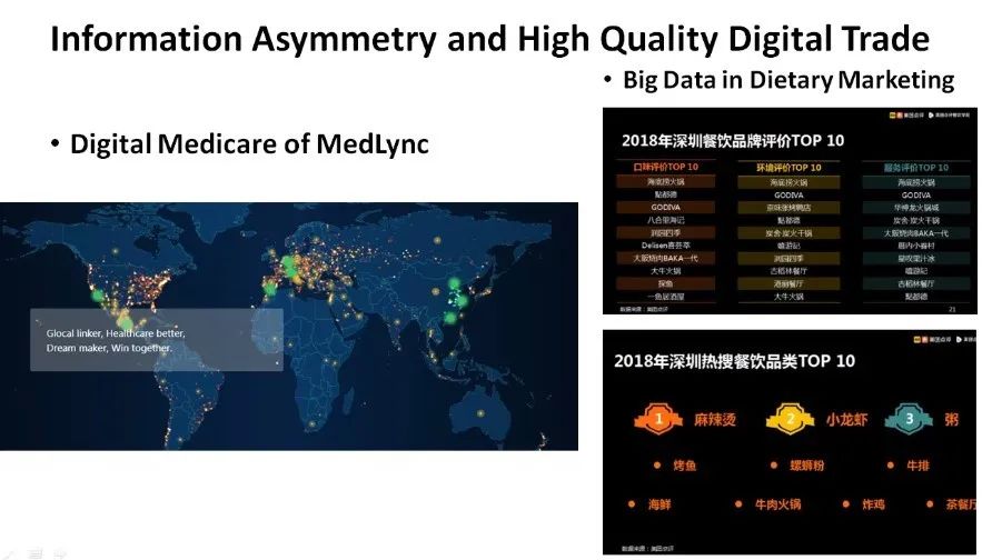 在本次讲座当中,霍达学长应用多个市场案例进行分析,通过图表、数据的运用使一些专业的理论更加清晰化。针对梅特卡夫法则,学长联系了京东无界零售、双十一物流配送等现象,点明了开发消费者和市场的价值、构建一套有效的商业生态系统的重要性;针对新经济增长理论,学长结合京东的智慧扶贫等事例,说明了信息与技术在经济增长中重要的推动作用;针对信息传递理论、内部化理论,学长也基于技术革新、商业模式的演进、技术创新的演进表达见解。