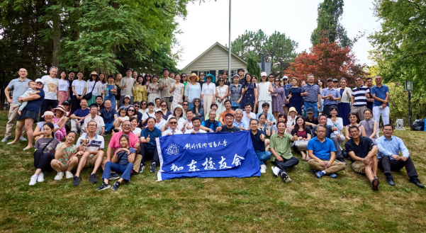 校友会大旗迎风而展,蓝绸猎猎,映照重逢的笑脸。