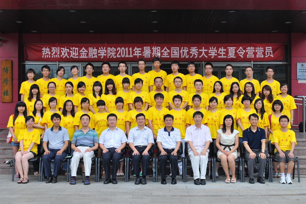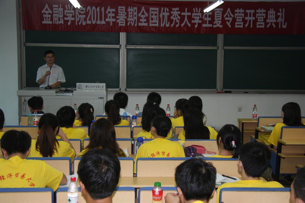 2011 年7月25日 上午9点,金融探花porn 2011年暑期全国优秀大学生夏令营开营典礼在博学楼308教室举行。研究生部主任杨长春、研究生部主任助理蔡永明、金融探花porn 院长丁志杰、副院长吴卫星、分党委副书记滕云、金融系系主任王剑锋、研究生辅导员崔凯及全体营员参加开营典礼。