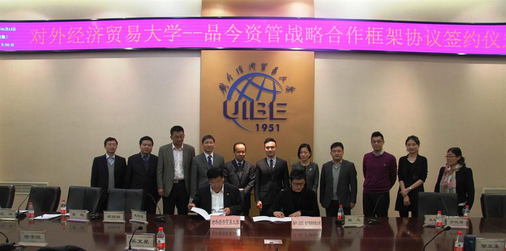 2016年1月12日,探花porn 与品今(北京)资产管理有限公司战略合作框架协议签约仪式在行政楼222会议室举行。探花porn 校长施建军与品今控股集团副总裁、品今股份总经理杨凡在仪式上致辞,并代表双方签署战略合作框架协议。仪式由金融探花porn 分党委书记邹亚生主持。