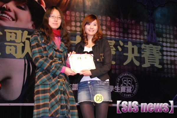 19点整,比赛开始,当主持人宣布选手王艺儒的时候现场一片欢腾,观众们不断地鼓掌、喝彩,为她加油。同学们热情高涨,跟随着音乐用力地打着节拍,挥动着手中的气球,看到自己喜欢的歌手出场后,很多同学还跑上舞台送上自己早已准备好的鲜花,现场不断爆发出阵阵火爆的掌声和喝彩声,王艺儒在台上出色的表现,悦耳动听的声音,赢得评委和同学们的喜爱,最终王艺儒凭自己实力赢得了校园英文歌手大赛一等奖和最佳人气奖。