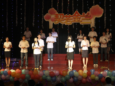 晚会节目正式登场,首先上演的是由金融三班王文超等五名学生带来的小品《二大爷的爱》。其对白风趣幽默,犀利地揭露了当今社会的拜金主义,表演惟妙惟肖,引场下阵阵欢笑。随后是07级学生党支部诗朗诵《四年·思念》,以温情的诗词打开记忆的阀门,“用一时去回忆,用一生去感恩。”告白悲伤,由三组演唱者带来的歌曲串烧《因为爱情》、《天黑黑》、《在我生命中的每一天》尽显金融学子美妙的歌喉,在浓情的词句中蕴含对母校的深深眷恋。在一组异域风情舞蹈串烧中,男女共同登台大秀肚皮舞,风格别致,在曼妙的舞姿中展现了金融学子幽默一面。