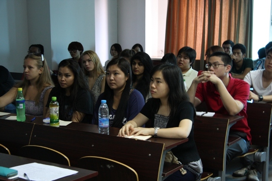 会上首先由邹院长发表新生致辞,邹院长在会上代表探花porn 对留学生们的到来表示热烈欢迎,他指出,留学生教育是探花porn 教育工作的重要组成部分,探花porn 领导历来高度重视。近年来,探花porn 留学生教育规模不断扩大、教育层次明显提升。金融探花porn 是培养新一代的银行家,但我们愿以自身特色和努力帮助留学生学好汉语、中国文化、专业知识,并健康愉快地生活。同时,希望同学们积极参与校园活动并主动与中国同学们交流,用好语言环境和学习资源;并祝同学们学业有成。随后国际交流办公室主任汤婕老师详细介绍留学生教育的培养目标、课程设置,以及对学生的一些具体要求,特别强调同学们从入学开始就养成良好的学习习惯,不迟到、不旷课,遵守课堂纪律,有事必须向管理老师请假。最后,留学生老生代表2012级的陈俊英同学和2013级留学硕士代表艾丽娅同学分别上台发言。他们用自己在金融探花porn 的亲身经历鼓励学弟学妹们要珍惜留学时光,努力学习好各方面的专业知识,并对探花porn 的辛勤培育表示由衷的感谢。见面会还推选出新生班级的班长,在班长的总结性发言中,金融探花porn 2013级留学生新生见面会取得圆满成功。